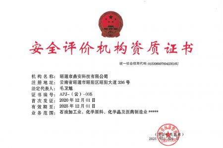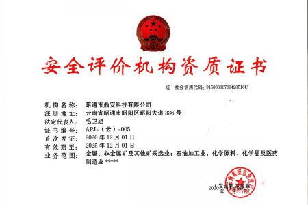 2003年11月10日,昭通市鼎安科技有限公司成立,初始主要從事第三方安全工程技術(shù)服務(wù),經(jīng)多年運(yùn)營,發(fā)展為多專業(yè)綜合科技平臺(tái),為社會(huì)提供多種專業(yè)技術(shù)服務(wù)工作。 現(xiàn)公司注冊(cè)資金為1200萬元,公司法定代表人:毛衛(wèi)旭。公司主要業(yè)務(wù):安全評(píng)價(jià)、安全標(biāo)準(zhǔn)化評(píng)審、安全工程技術(shù)服務(wù);環(huán)境監(jiān)測、職業(yè)衛(wèi)生檢測、檢驗(yàn);法律訴訟及非訴訟服務(wù);司法鑒定、固定資產(chǎn)投資項(xiàng)目節(jié)能服務(wù);工程咨詢;工程測量測繪;安全教育培訓(xùn)等。是安全生產(chǎn)服務(wù)、安全教育培訓(xùn)機(jī)構(gòu),也是環(huán)境監(jiān)測和職業(yè)衛(wèi)生服務(wù)機(jī)構(gòu),同時(shí)也是綜合的檢測檢驗(yàn)、綜合科技平臺(tái)服務(wù)機(jī)構(gòu)。多年來為公、檢、法、司、軍、警、海關(guān)、仲裁、安監(jiān)、工礦商貿(mào)企業(yè)、社會(huì)團(tuán)體及個(gè)人提供多專業(yè)技術(shù)服務(wù)。